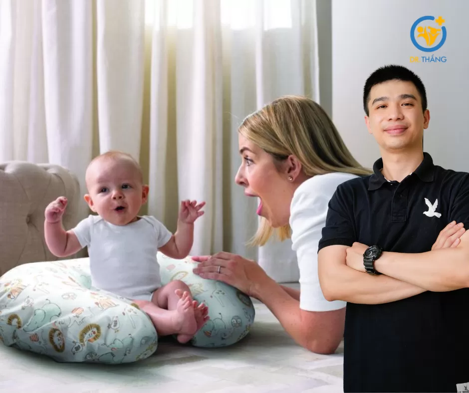 Trẻ không ngồi vững khi đã 8–9 tháng: Trẻ vẫn cần nhiều hỗ trợ khi ngồi, dễ ngã hoặc không giữ được lưng thẳng, cho thấy khả năng kiểm soát cơ thể còn yếu.