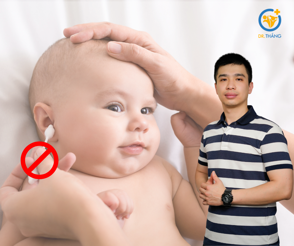 Cha mẹ không nên sử dụng tăm bông để lấy ráy tai cho bé vì có thể đẩy ráy sâu hơn hoặc làm tổn thương ống tai