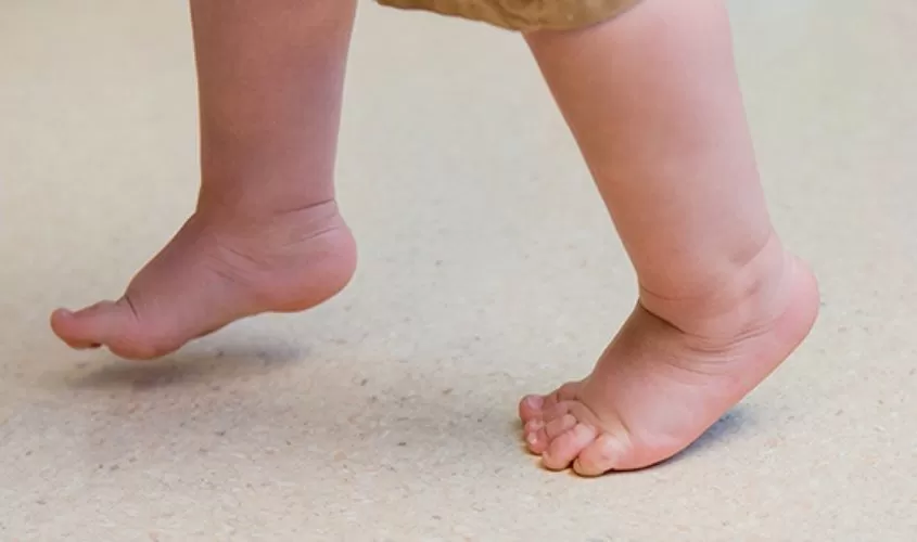 Gót chân không chạm đất khi đi: Trẻ luôn đi bằng mũi chân và không thể đặt gót xuống ngay cả khi được nhắc nhở, có thể liên quan đến vấn đề cơ – gân.