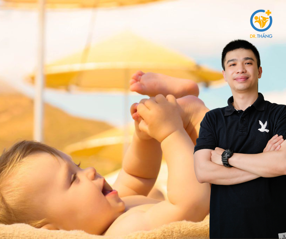 Tắm nắng đúng cách cho bé: Tắm nắng nhẹ vào buổi sáng sớm, phơi nắng tay chân trong thời gian ngắn giúp cơ thể bé tổng hợp vitamin D tự nhiên, hỗ trợ phát triển chiều cao.