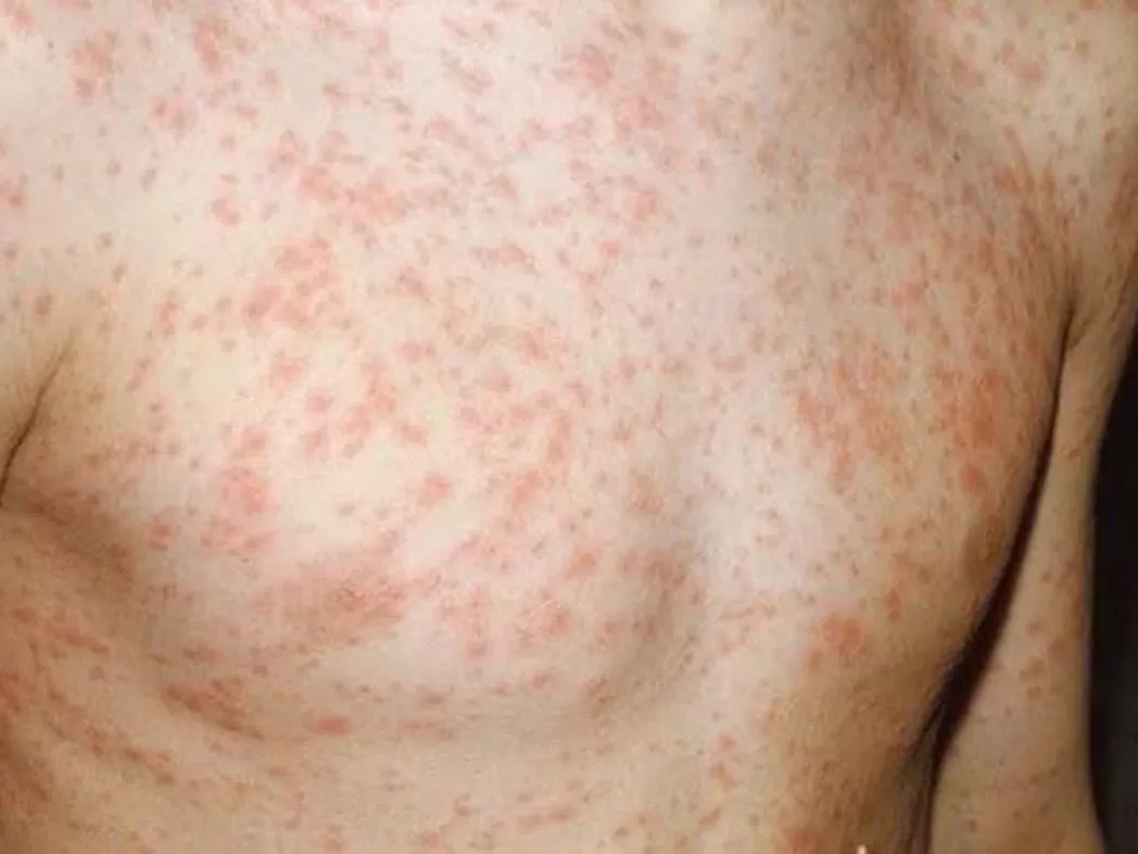 Bệnh sởi ở trẻ em đặc trưng bởi biểu hiệu lâm sàng phát ban đỏ dày đặc toàn thân