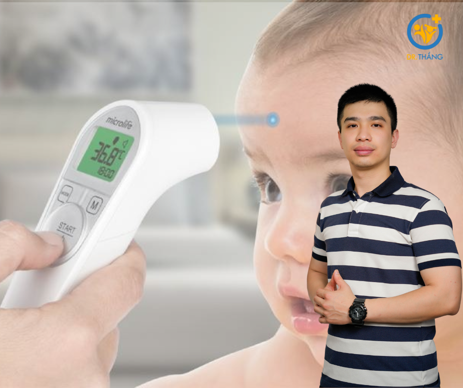 Nhiệt kế hồng ngoại, bao gồm loại đo trán và đo tai, là lựa chọn không xâm lấn, cho kết quả nhanh trong vài giây, rất phù hợp cho trẻ lớn hoặc trẻ không hợp tác. Đo ở tai (thân nhiệt bình thường 35,8-38°C) phù hợp cho trẻ trên 6 tháng, nhưng cần kéo nhẹ vành tai ra sau để thẳng ống tai, đảm bảo đầu nhiệt kế được đặt đúng vị trí. Đo ở trán tiện lợi cho mọi lứa tuổi, nhưng kết quả có thể bị ảnh hưởng bởi mồ hôi, nhiệt độ phòng, hoặc cách đặt thiết bị. Để tăng độ chính xác, cha mẹ nên làm sạch vùng trán hoặc tai của trẻ trước khi đo và tuân theo hướng dẫn của nhà sản xuất. Nhiệt kế hồng ngoại cần được vệ sinh sau mỗi lần sử dụng để tránh sai số hoặc lây nhiễm.