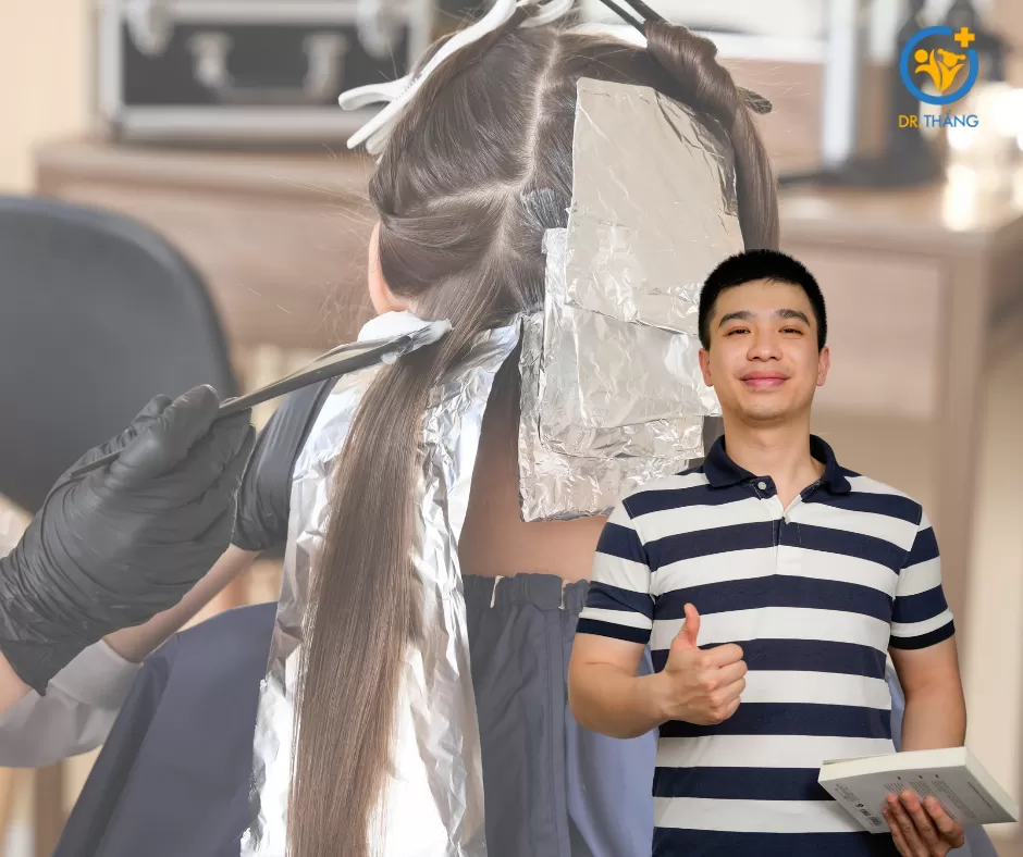 Dặn thợ cố gắng không bôi thuốc sát chân tóc và xả sạch thuốc kỹ càng.