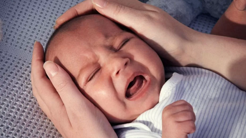 Trẻ quấy khóc the thé, dỗ không nín: Tiếng khóc bất thường do áp lực trong sọ não tăng cao gây đau đớn dữ dội.